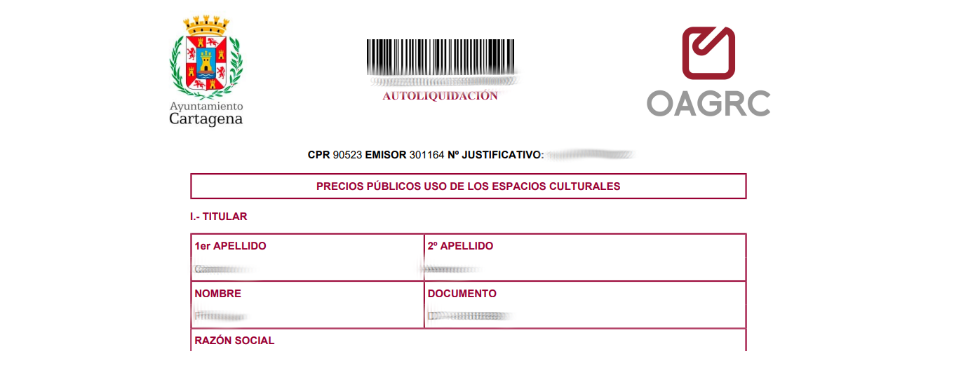 Nota: A través de este trámite puede realizar el pago de las autoliquidaciones generadas en la Sede Electrónica del Ayuntamiento de Cartagena.